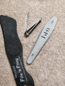 2. After you’ve given your feet a nice well deserved soak its time to cut and shape the nails. Cut them as straight as possible to prevent ingrowing toenails using nail clippers or nail scissors. Then with a good file using log strokes to even them all out so they are the same length and shape.